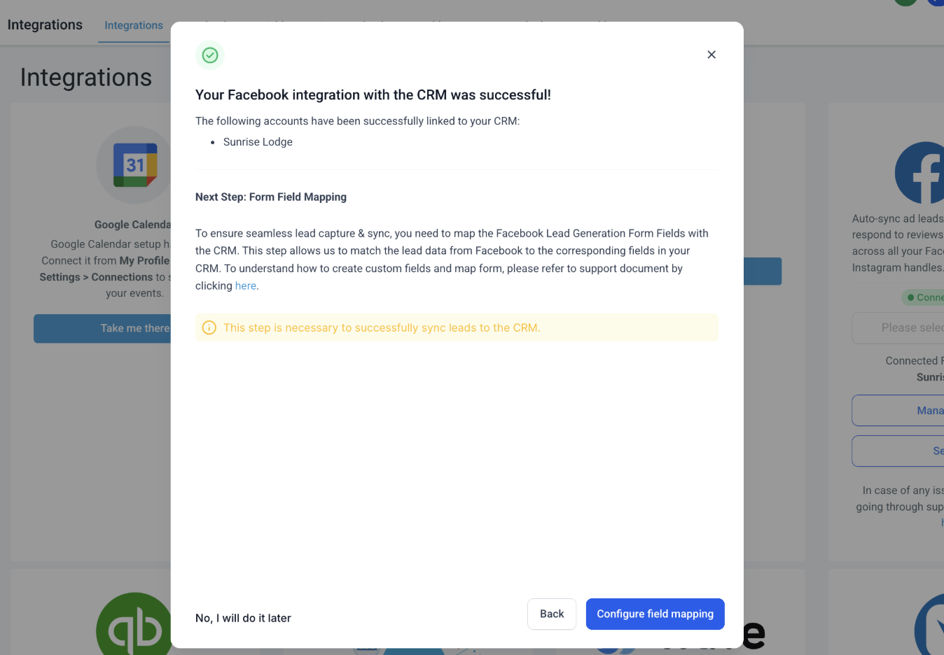 Paso 7: Mapea los campos del formulario de Facebook con los campos del CRM