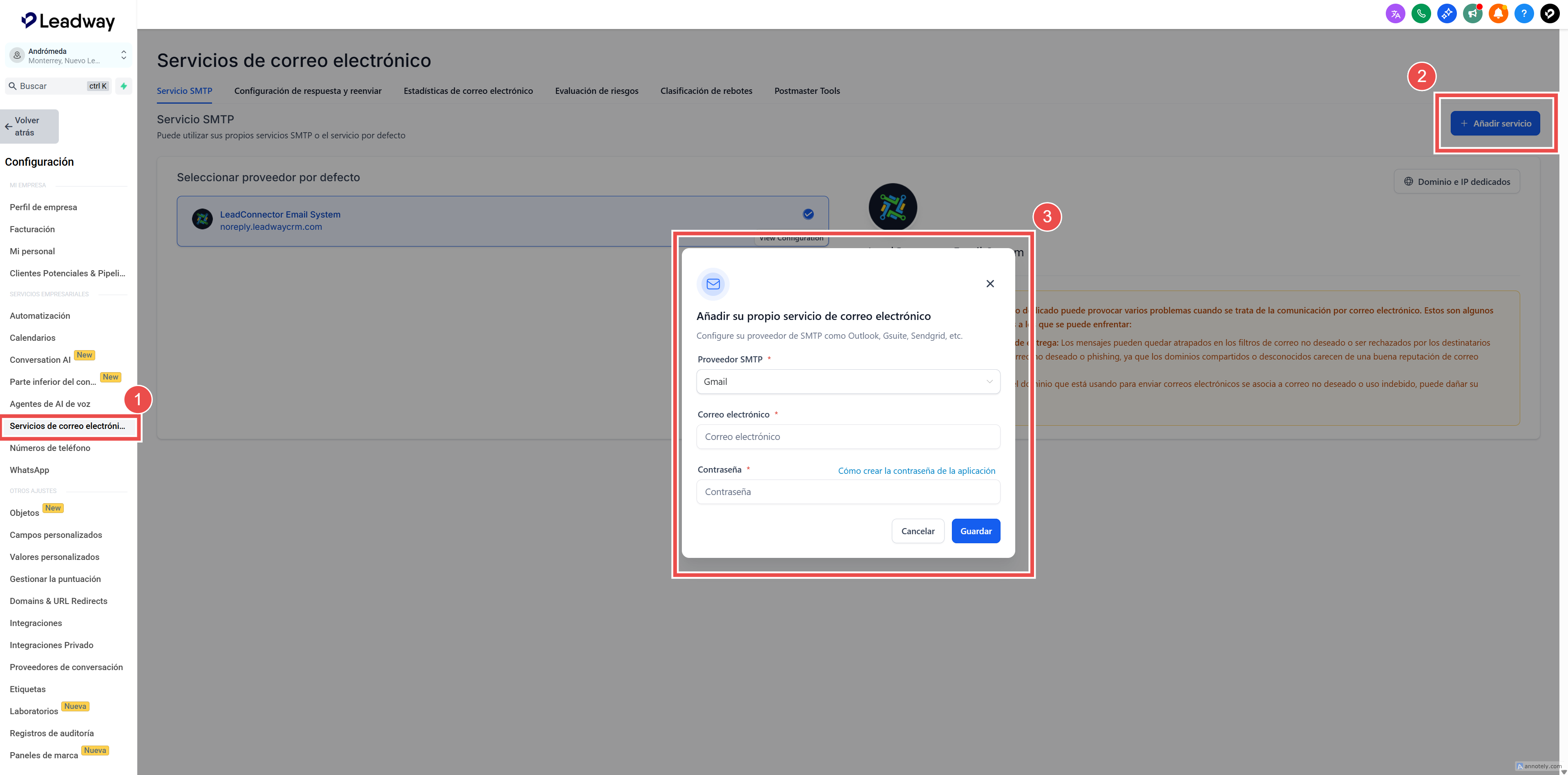 Ve a Configuración -> Servicio de correo -> Servicio SMTP.