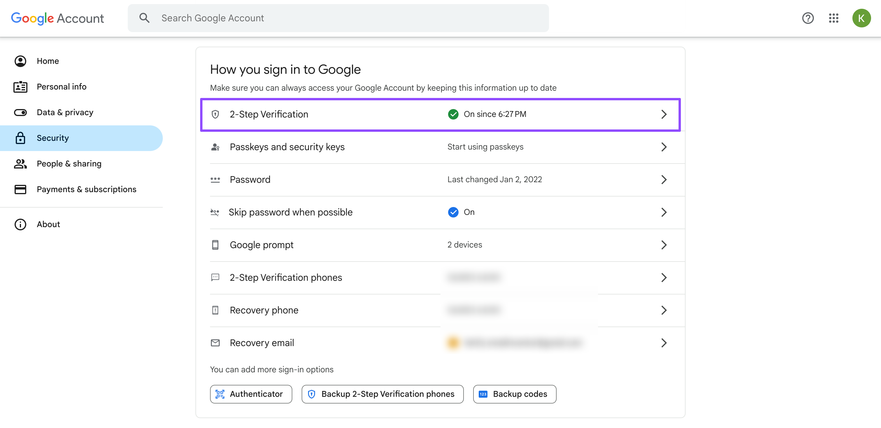 R: La verificación en dos pasos añade seguridad adicional a tu cuenta. Google requiere que esta opción esté activada para poder crear contraseñas específicas de aplicación y así proteger tu cuenta.