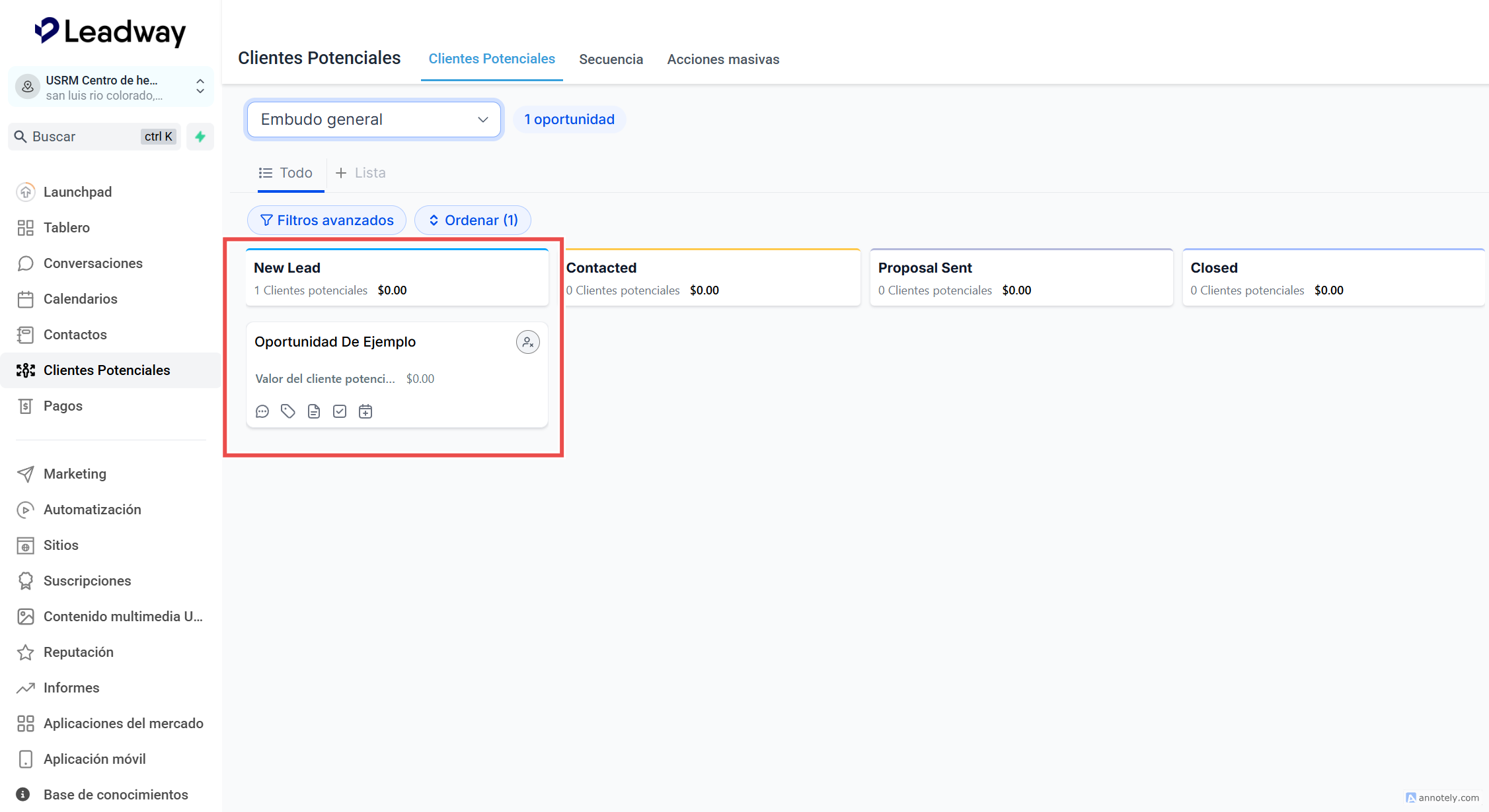 Listo, veras las oportuniades que creaste en tu embudo / secuencia