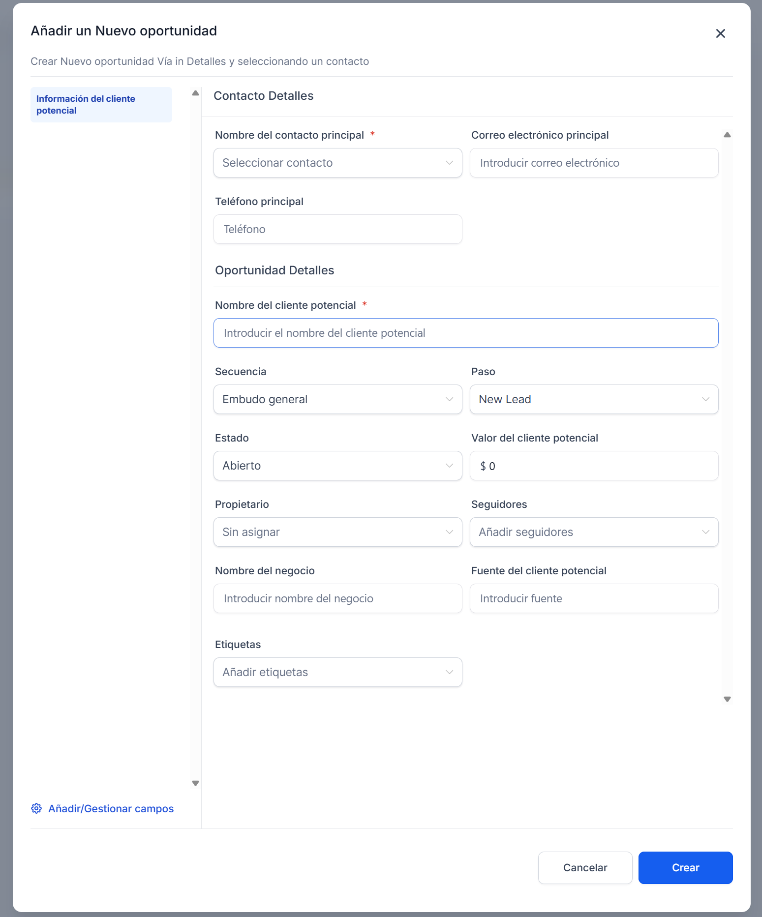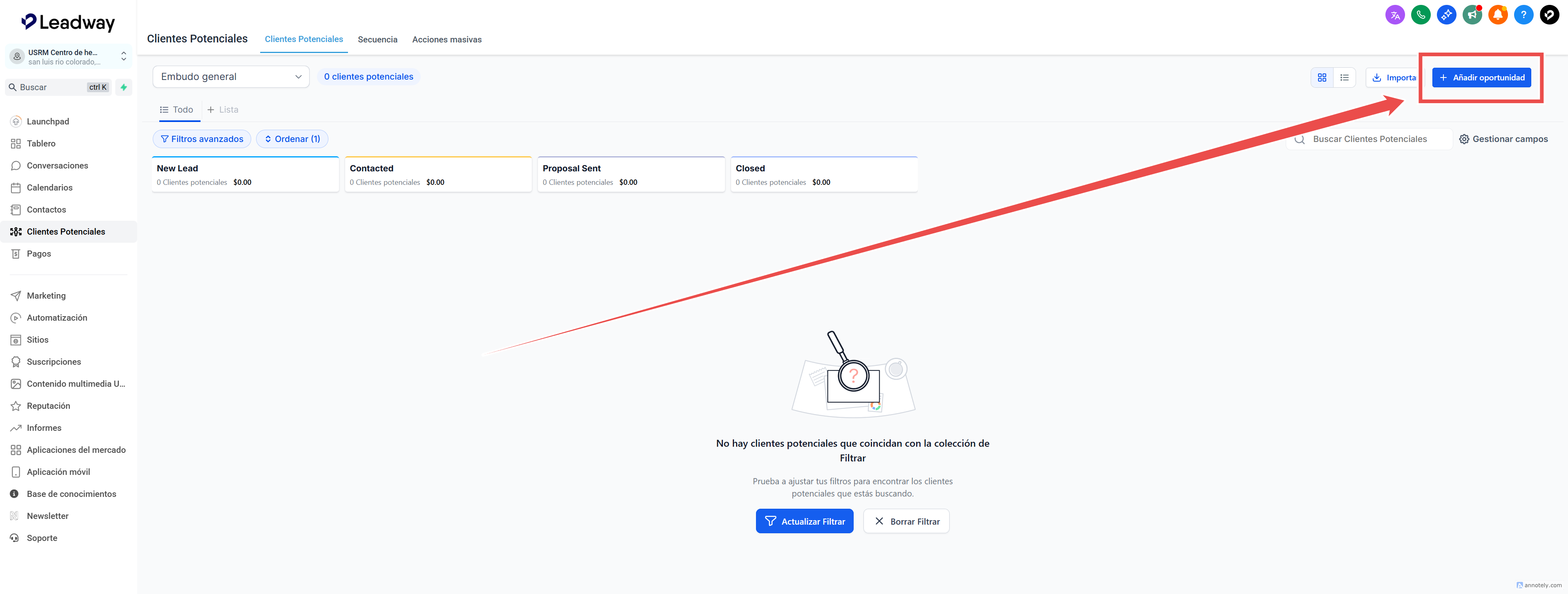 - Haz clic en "añadir oportunidad" dentro de la herramienta de clientes potenciales