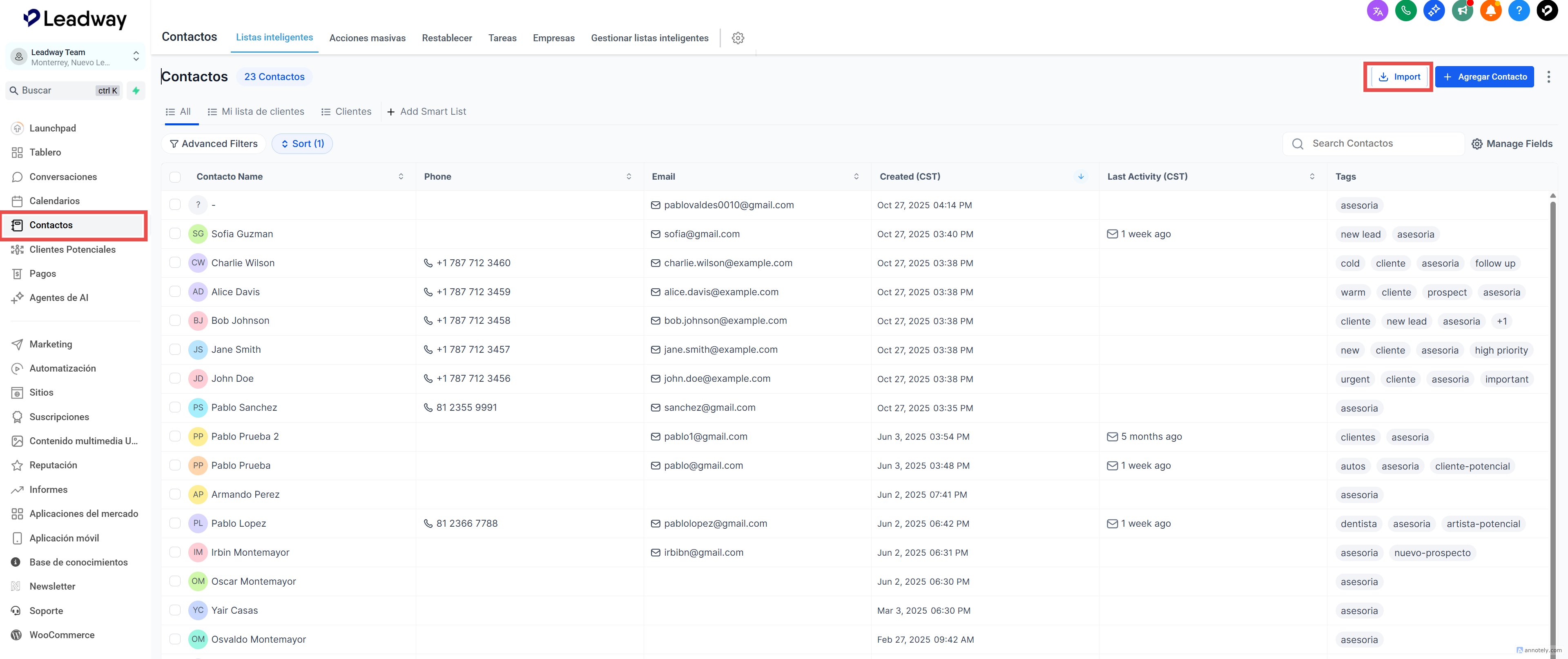 Tu base de contactos es el corazón de tu negocio. Importa rápidamente tus contactos desde distintas plataformas a un solo lugar y comienza a interactuar de inmediato. Tener todos tus contactos centralizados significa menos complicaciones, mayor efectividad en tus campañas y relaciones más sólidas desde el primer momento.