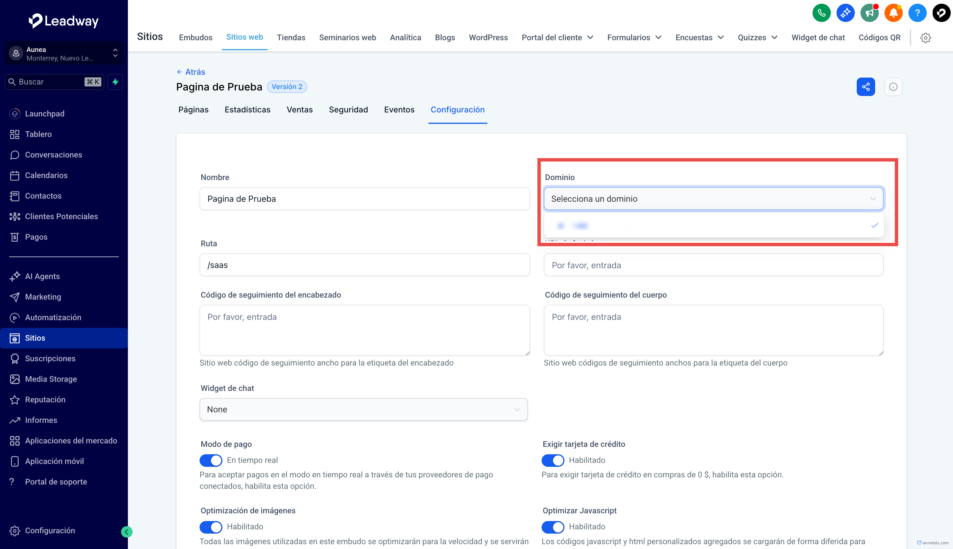 16. Selecciona el dominio y haz clic en Guardar: Elige tu nuevo dominio y guarda los cambios. ¡Felicidades, tu sitio web está en línea!