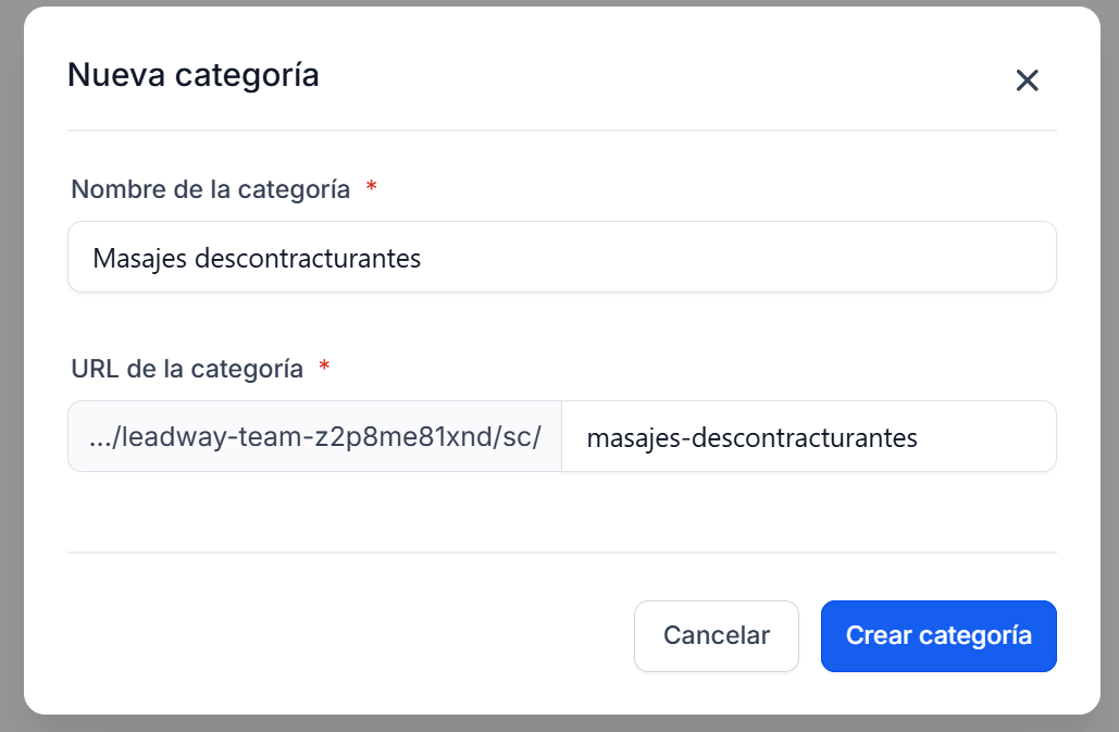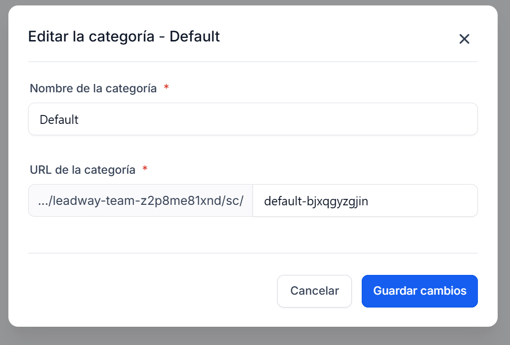 Puedes renombrar una categoría o ajustar su URL compartible conforme tus servicios evolucionen.