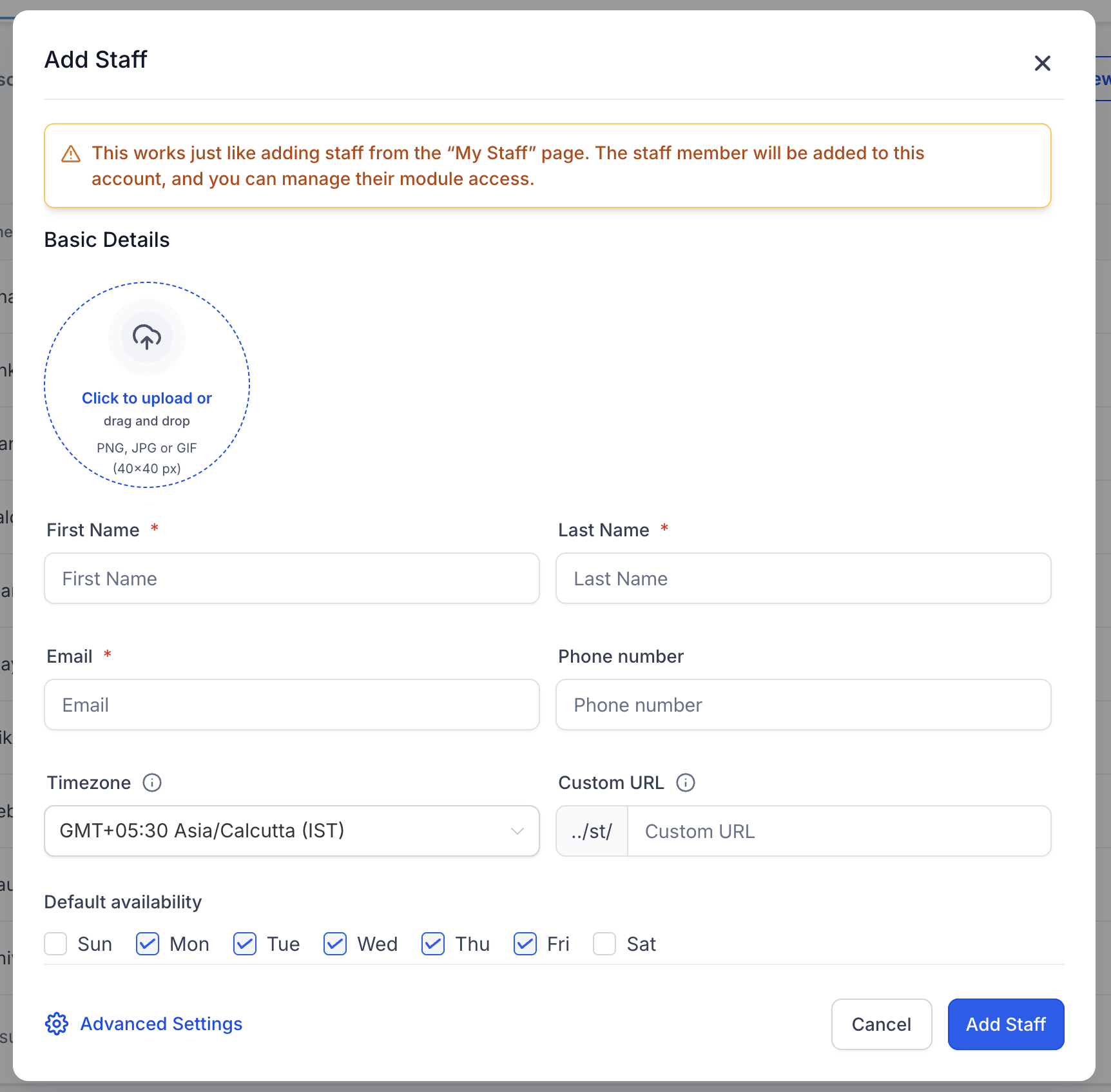 Este artículo explica cómo agregar miembros del personal, asignarlos a servicios y definir su disponibilidad dentro de Leadway.