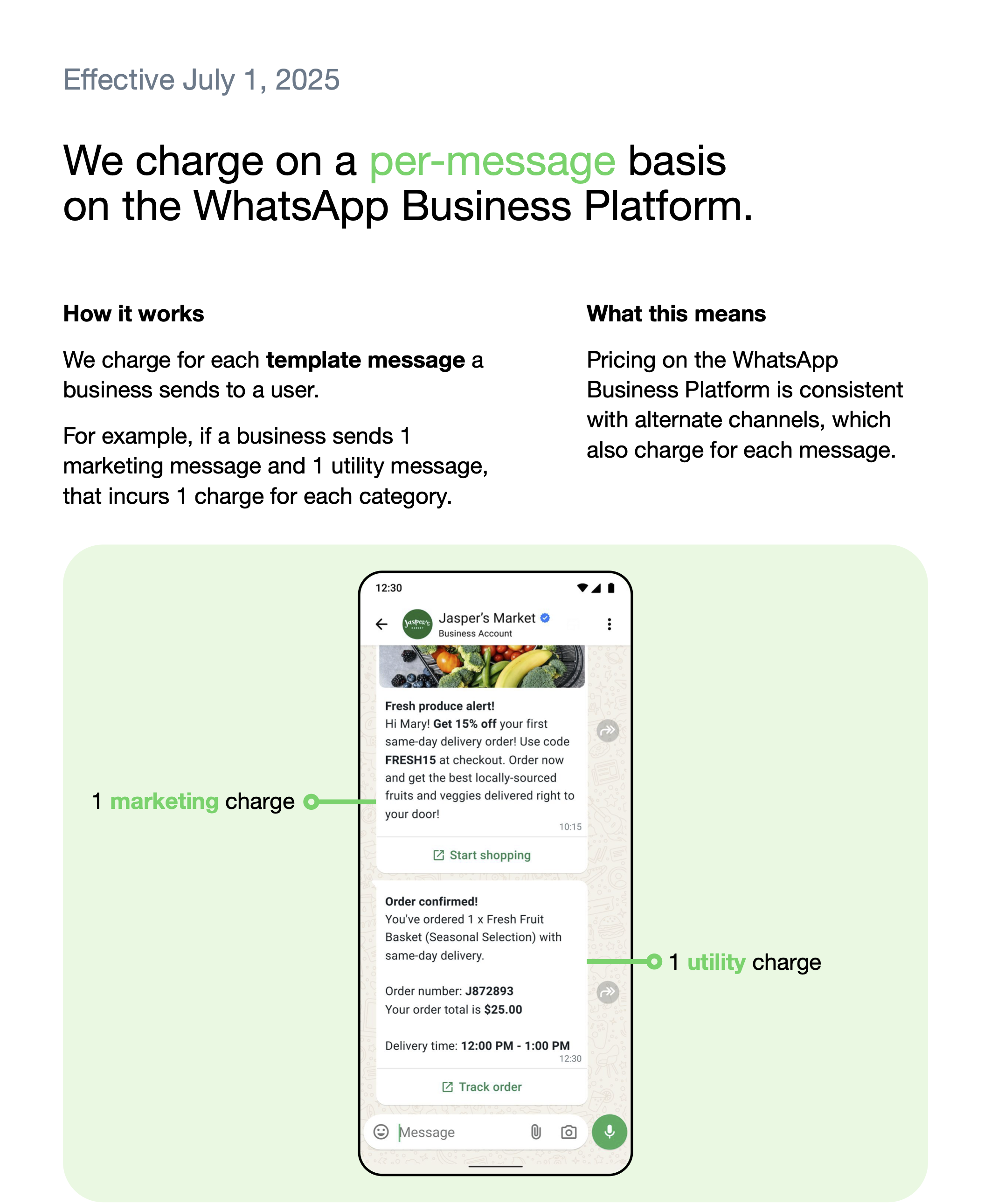 A partir del 1 de julio de 2025, WhatsApp adopto un modelo de precios basado en plantillas , donde a las empresas se les cobrará por cada plantilla entregada, en lugar de por conversación.