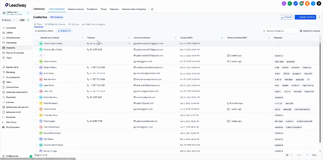 Crear una lista inteligente en Leadway es un proceso sencillo que te permite segmentar contactos automáticamente con base en criterios específicos. En lugar de actualizar listas de forma manual, las listas inteligentes mantienen tus grupos organizados y actualizados en tiempo real.