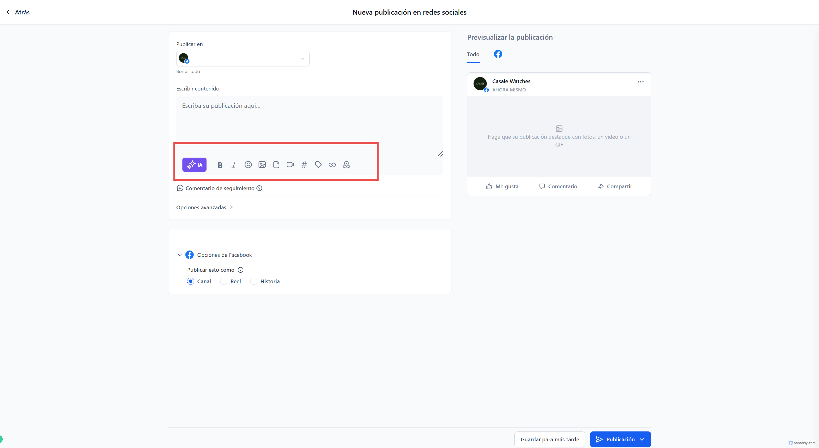 Estas herramientas te permiten personalizar y optimizar tu publicación antes de programarla o publicarla.