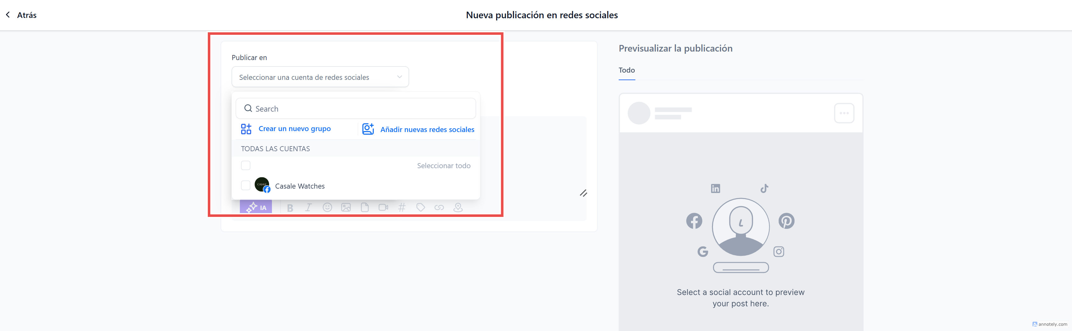 Selecciona las cuentas sociales adicionales que deseas conectar.