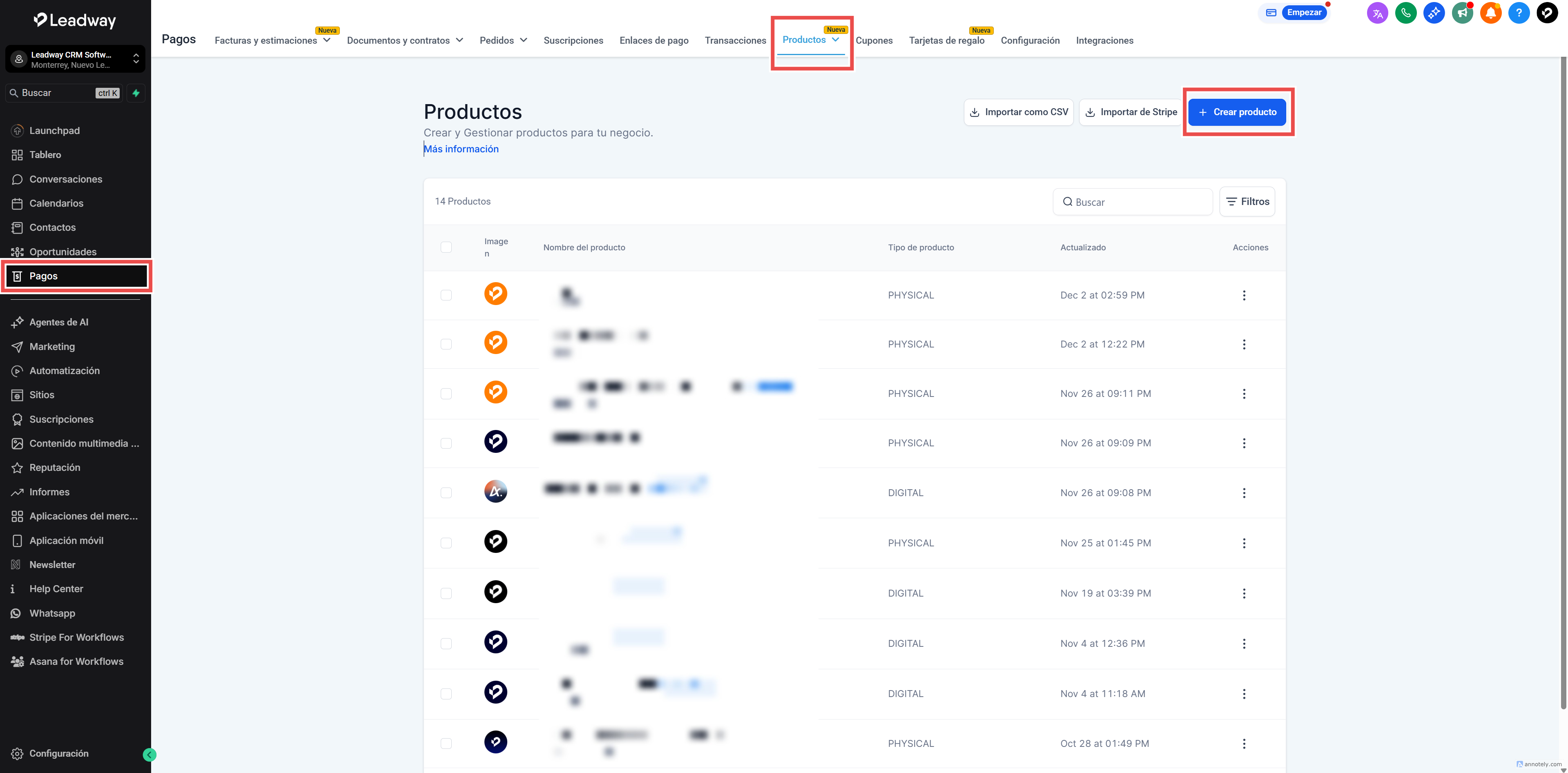 Ve a Pagos > Productos