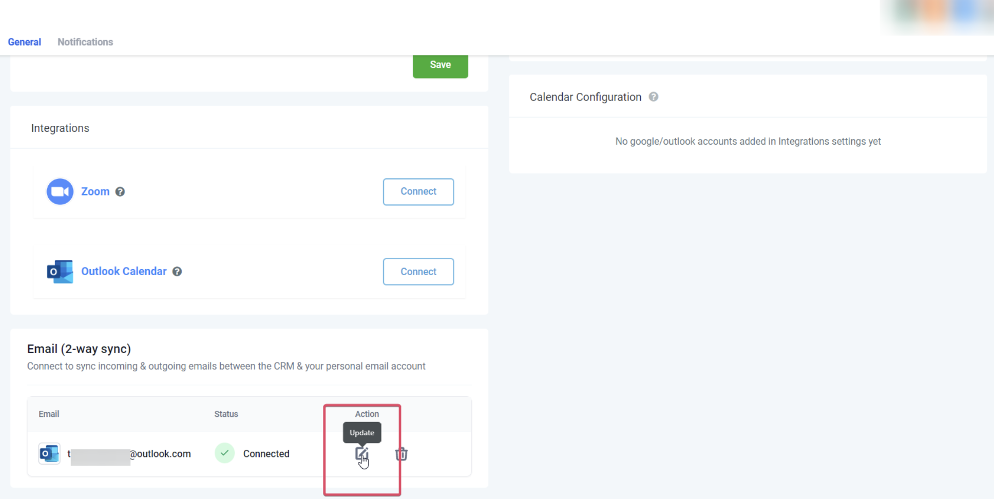 Los nuevos correos enviados desde el CRM comenzarán a sincronizarse con la dirección de email que hayas agregado recientemente.