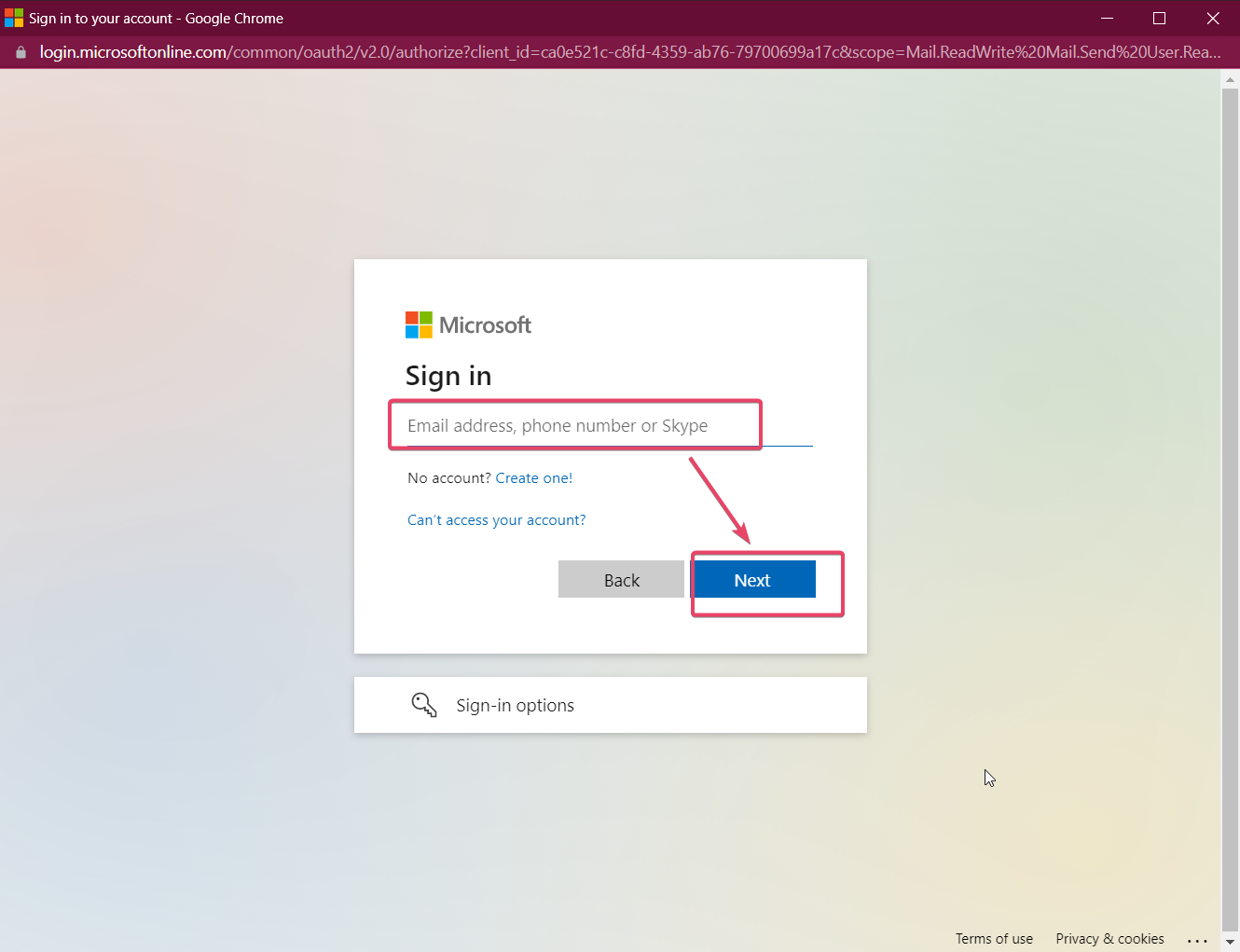 Completa la autorización ingresando las credenciales de tu correo de Outlook.