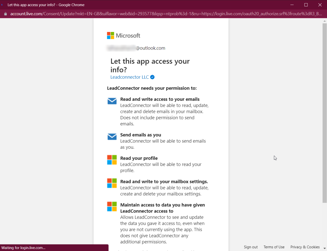 Aprueba los permisos solicitados para LeadConnector.
