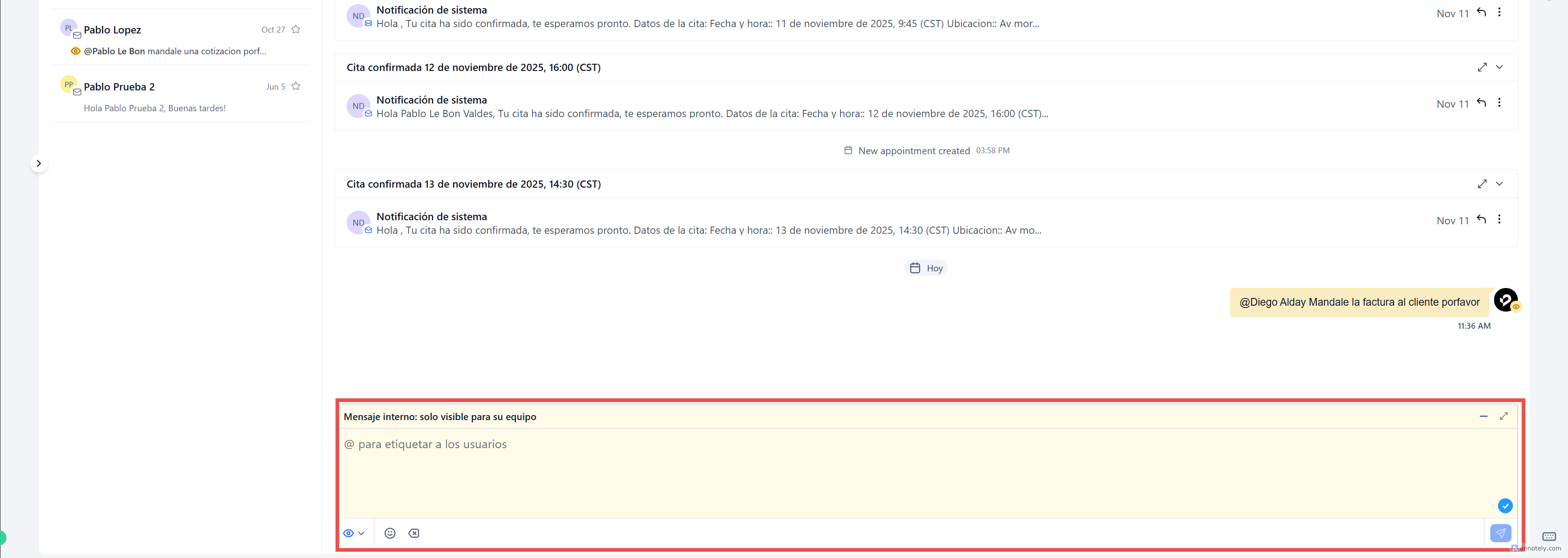 Selecciona comentario interno para agregar una nota privada.